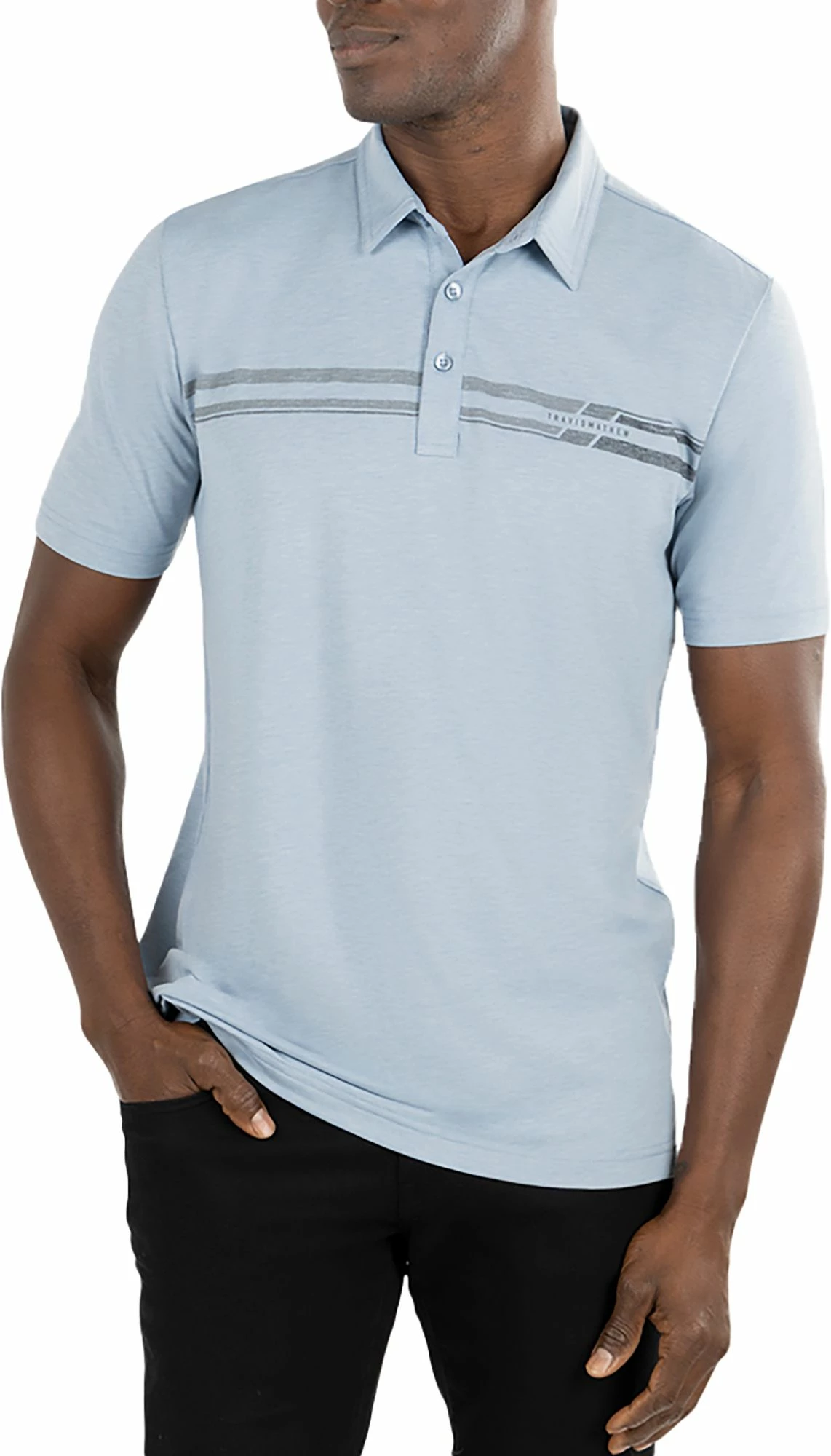 - Standard fit with a 3-button placket